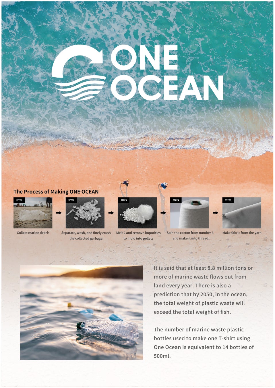 海洋ごみを回収し、再生素材としてリサイクルした素材です。