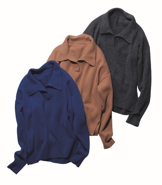 首元のおしゃれが楽しめる襟付きニットはこの冬のトレンド。タートルネックとの重ね着やスカーフ使いなど,コーデの幅が広がります。背中に切替えを施したデザインで,背中と腰回りをカバー。ゆったりとした袖とシルエットは,重ね着してももたつきません。