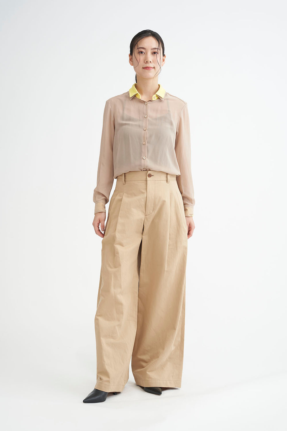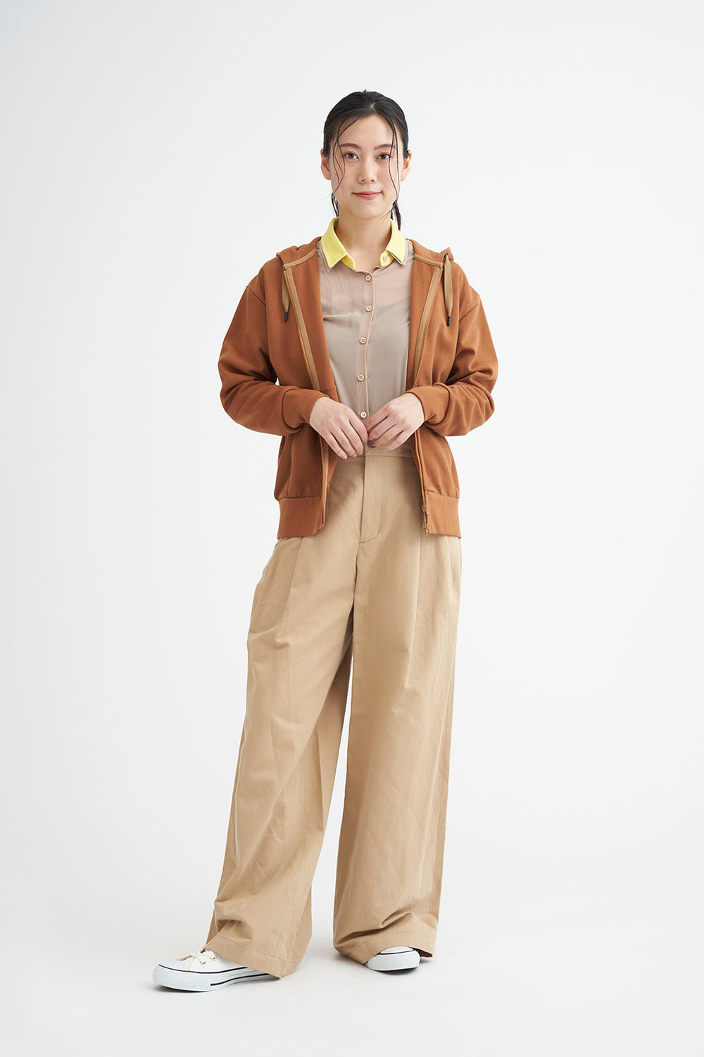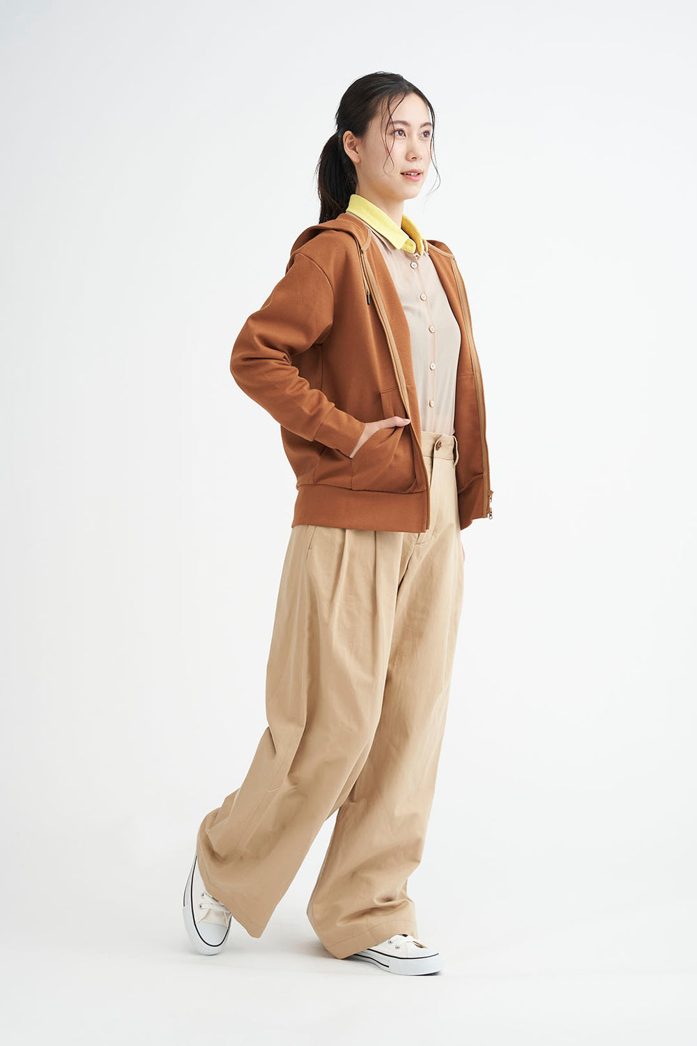 These environmentally friendly, fluorine-free, water-repellent chino pants make the most of the benefits of lightweight paper yarn, which is less likely to cause sweating.