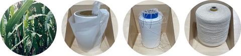 - 用途に応じて他の繊維と合わせた糸を作ります。ナイロンやレーヨン、ポリエステルなどと混撚され製品化されます。