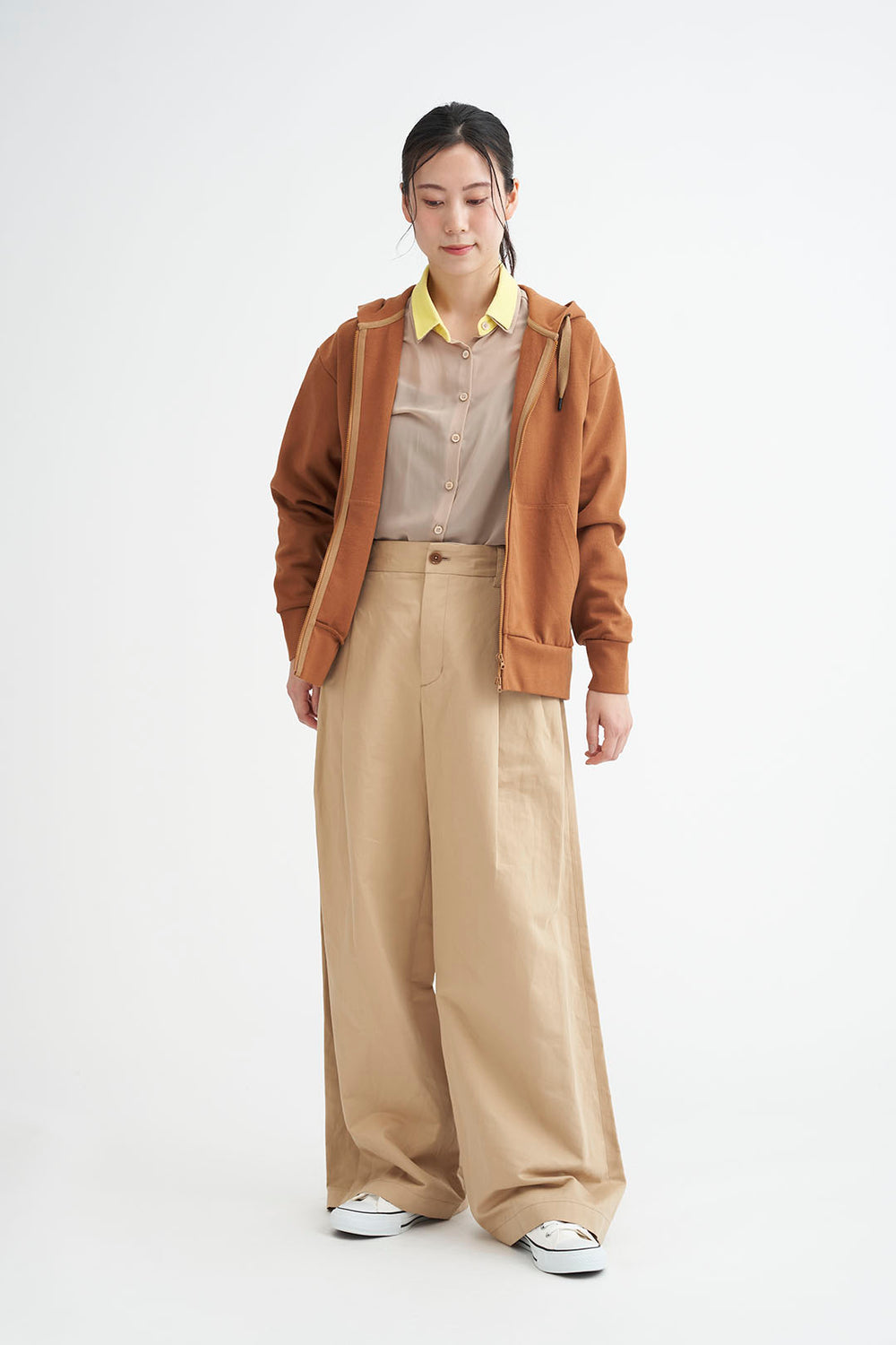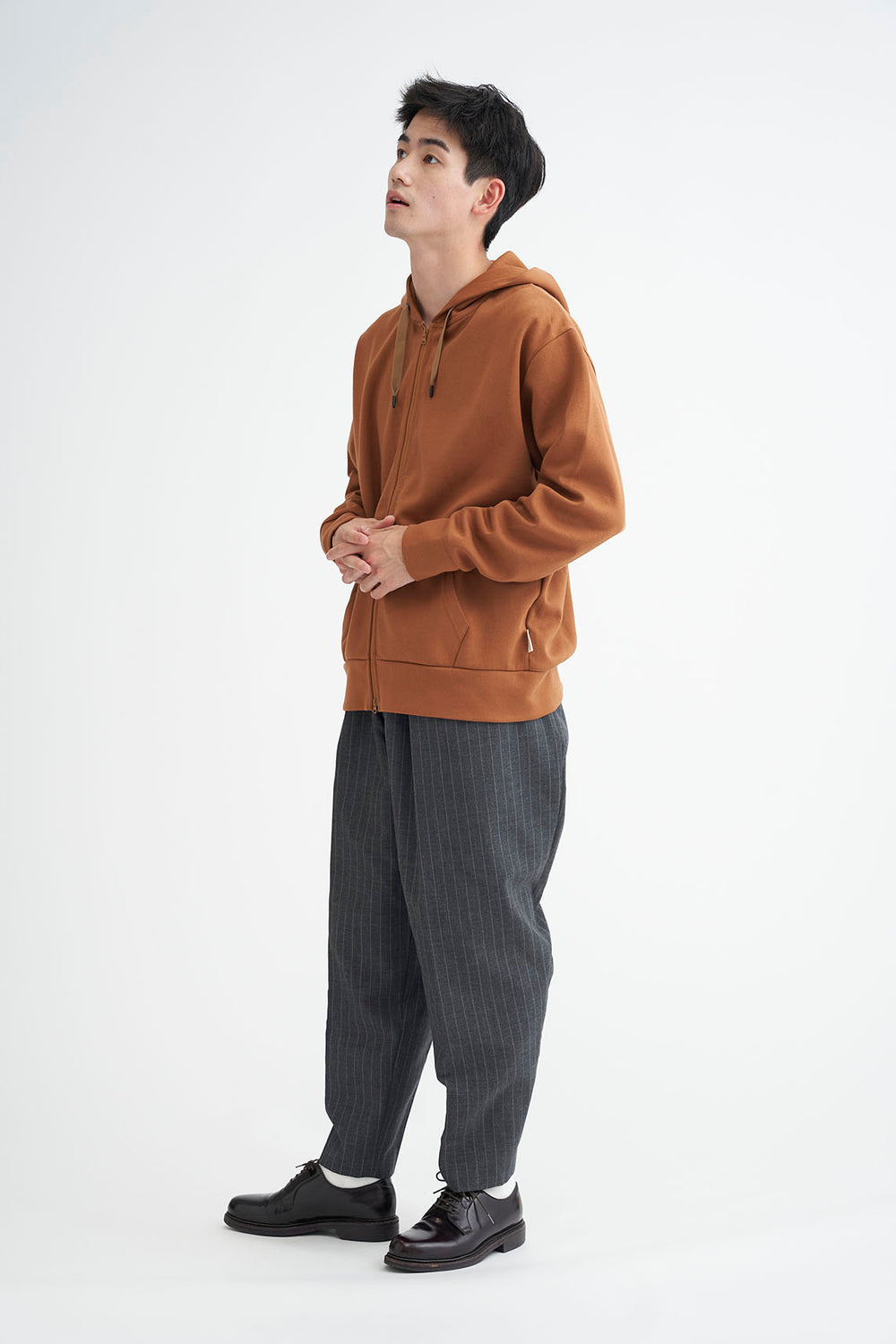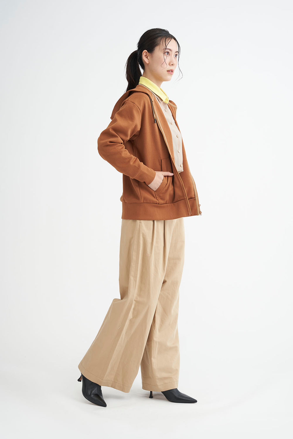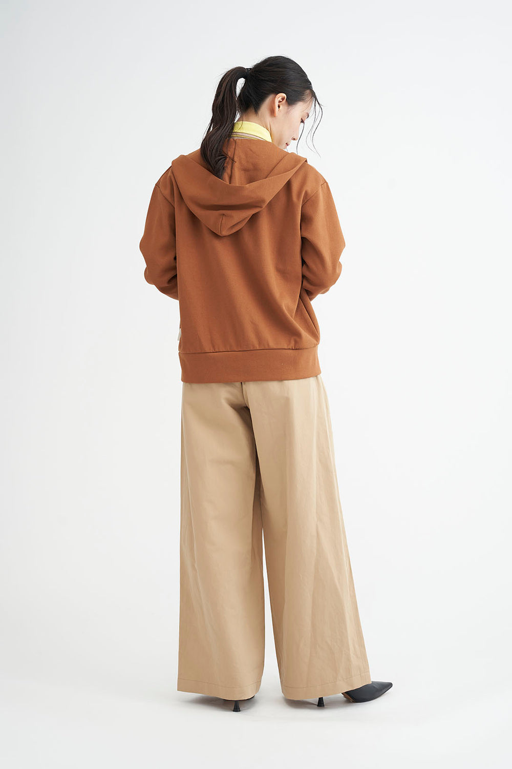 こちらのZIP HOODYはダブルジップになっているので着こなしの幅も広がります。